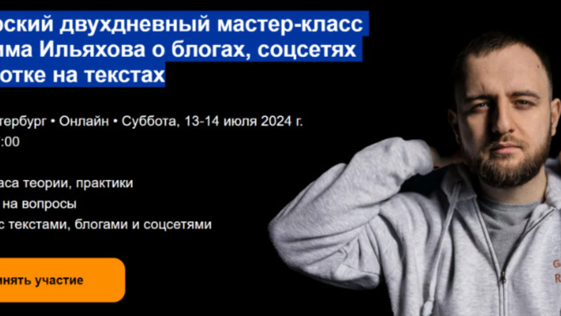 Отзывы о курсе «Двухдневный мастер-класс Максима Ильяхова о блогах, соцсетях заработке на текстах» от Максима Ильяхова