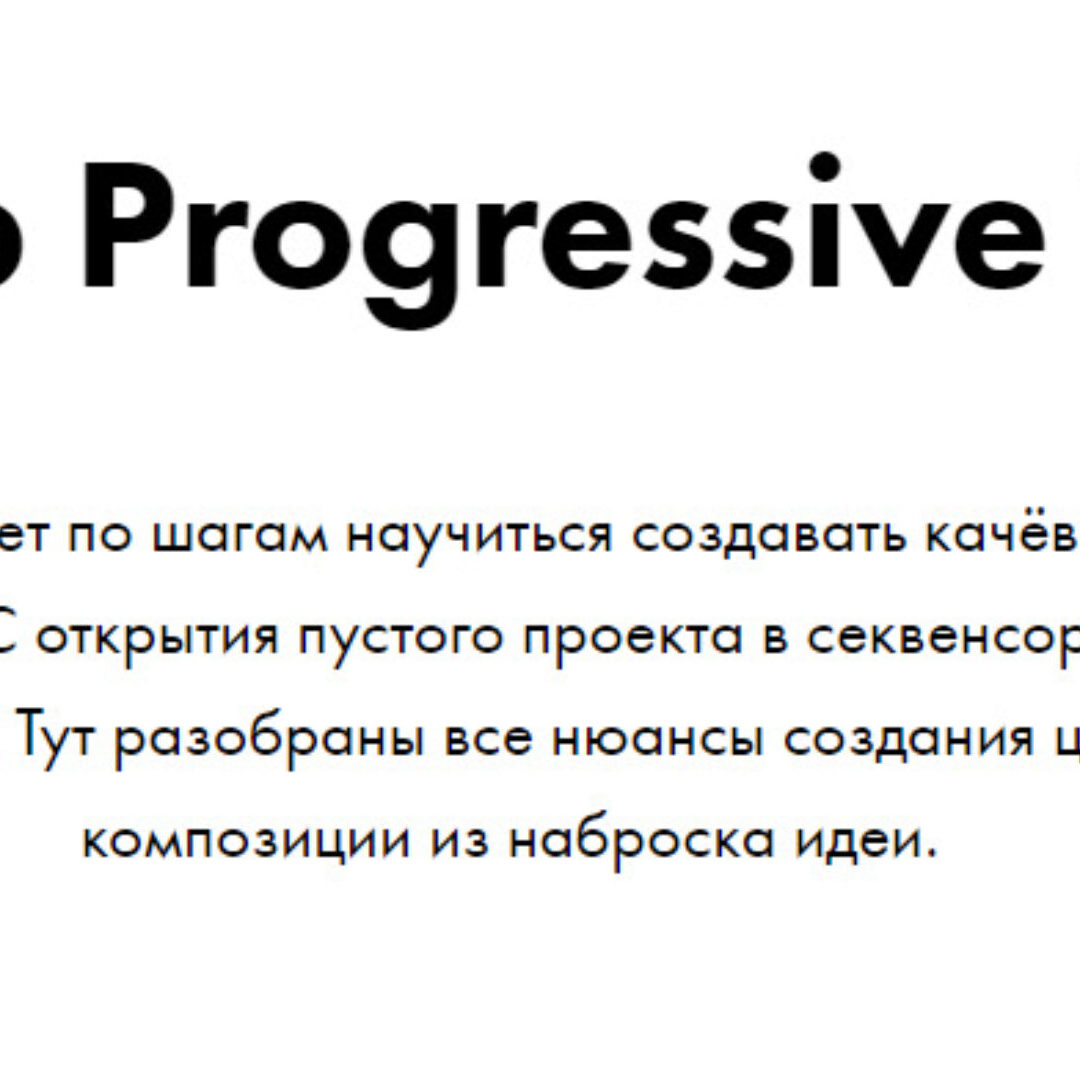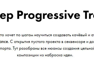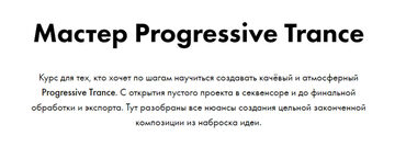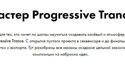 Курс для тех, кто хочет по шагам научиться создавать качёвый и атмосферный Progressive Trance. C открытия пустого проекта в секвенсоре и до финальной обработки и экспорта. Тут разобраны все нюансы создания цельной законченной композиции из наброска идеи.