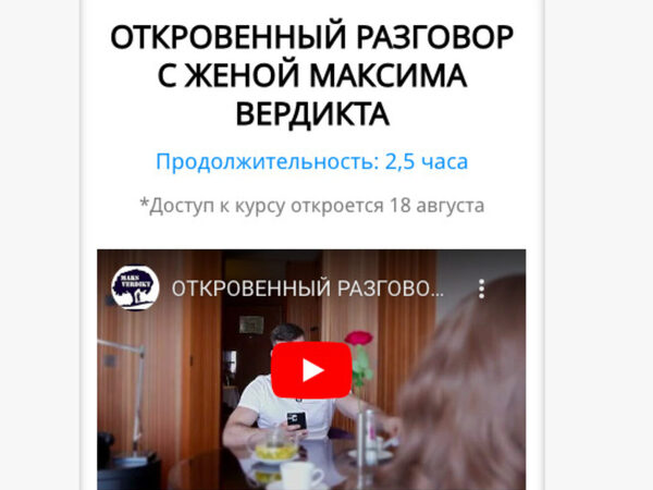 Отзывы о курсе «Откровенный разговор с женой Максима Вердикта» от Максима Вердикта