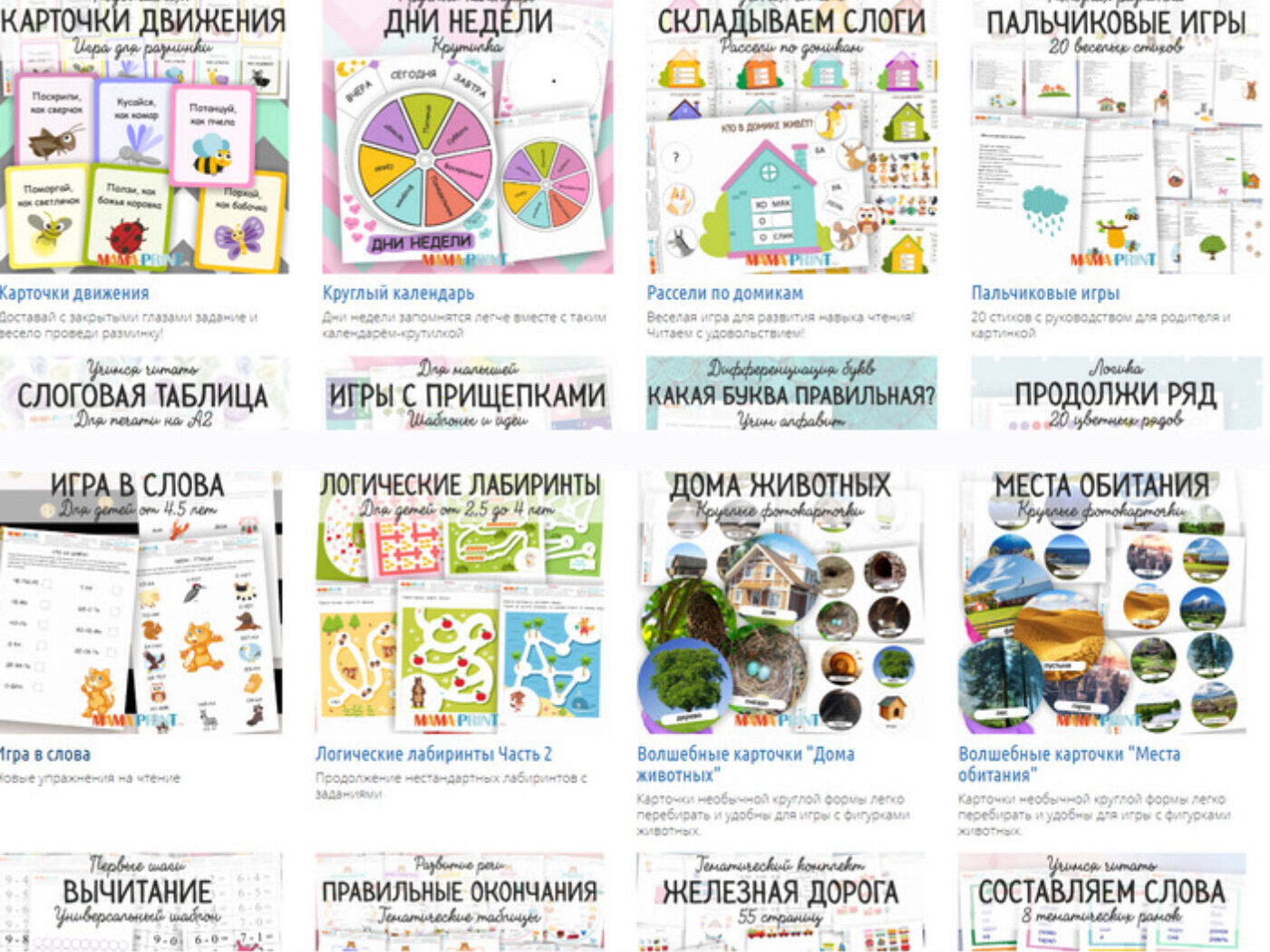 [mama-print] Тематические комплекты для занятий