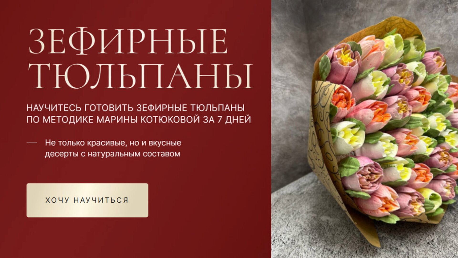 получите заряд энергии и настрой на прохождение обучения и узнаете, что вас ждет на курсе «зефирные тюльпаны»