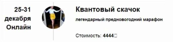 По традиции в предверии Нового года Марина проведёт свой легендарный трансформационный марафон «Квантовый скачок».
