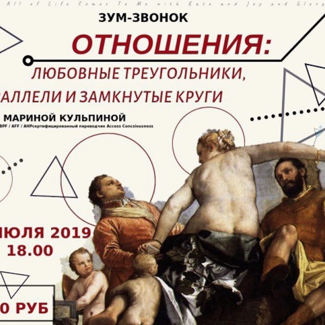 19 января 19:00 Как вы выстраиваете ваши отношения? Как часто вы создаёте отношения, которые не работают для вас? Сколько энергии мы тратим пытаясь изменить других или измениться самому? Сколько времени мы проводим в погоне за счастьем? Что если, если у вас есть совершенно другая возможность с