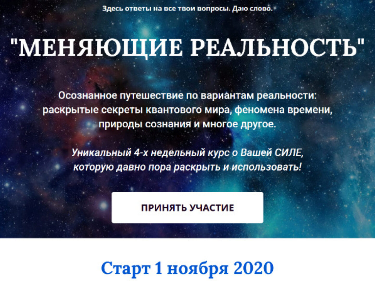 Самая крутая трансформация жизни ждет вас на практическом курсе - Меняющие Реальность!