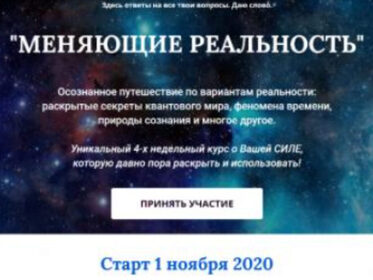 Взлом реальности (Марина Майская) Курс- продолжение курса Меняющие реальность Это не просто информация, это нечто, что в процессе чтения трансформирует сознание, и ты видишь реальность по-новому. И каждое прочтение инфы все сильнее сдвигает в сторону полного управления реальностью. Внутри