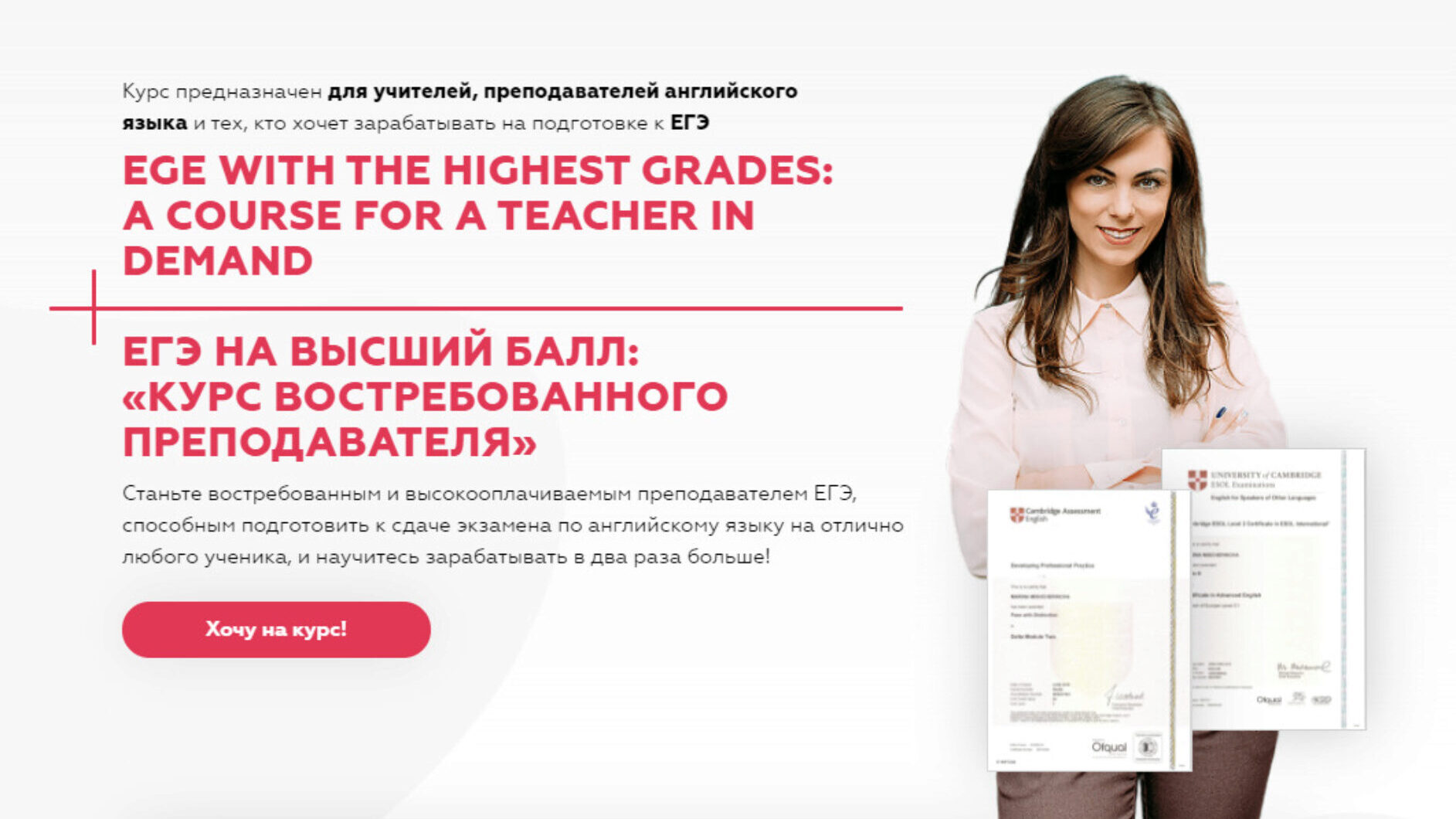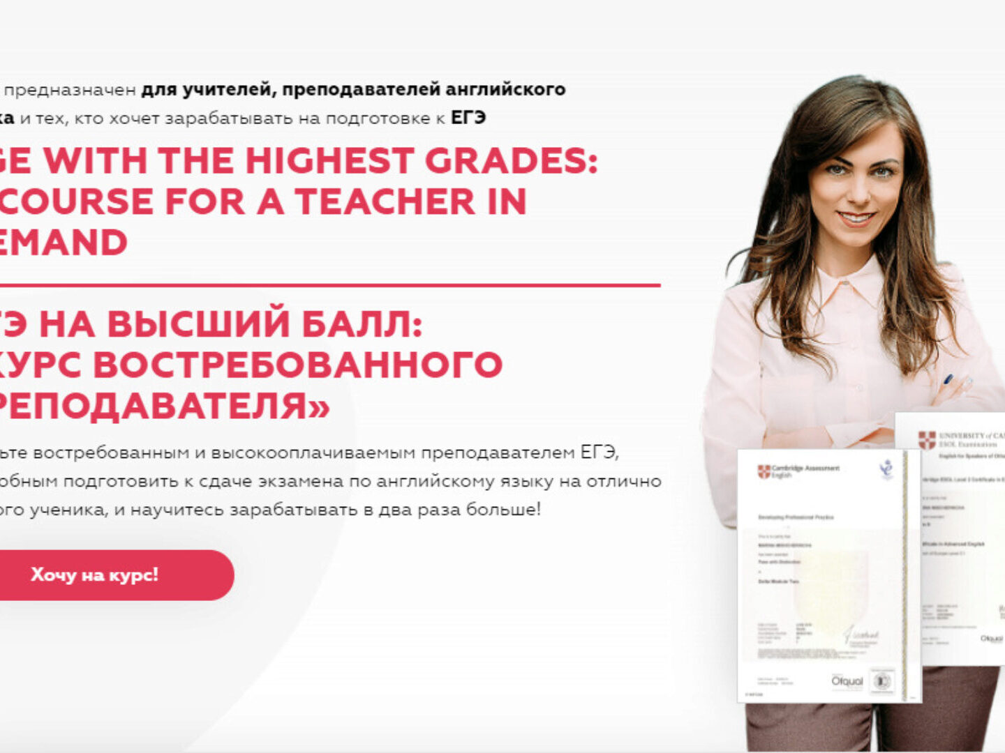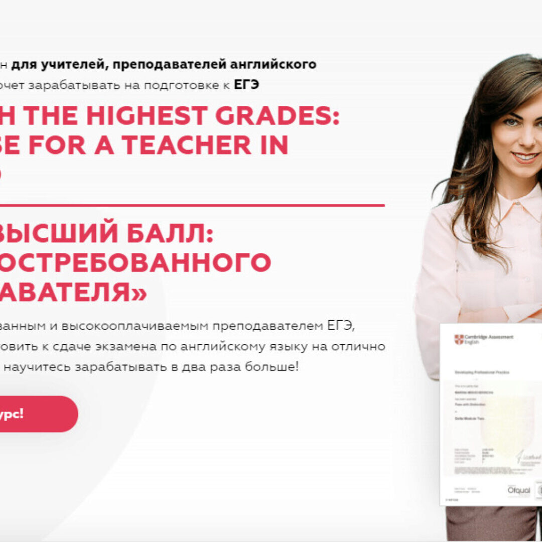 Станьте востребованным и высокооплачиваемым преподавателем ЕГЭ, способным подготовить к сдаче экзамена по английскому языку на отлично любого ученика, и научитесь зарабатывать в два раза больше!
