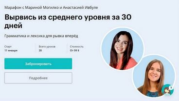Этот марафон — самый полный курс по грамматике и лексике для уровня Intermediate, который позволит тебе сделать рывок из среднего уровня и перейти на Advanced. Тебя ждёт 60-дневная интенсивная углублённая программа, на которой прокачаем твой уровень, научим грамотно и свободно говорить как носитель