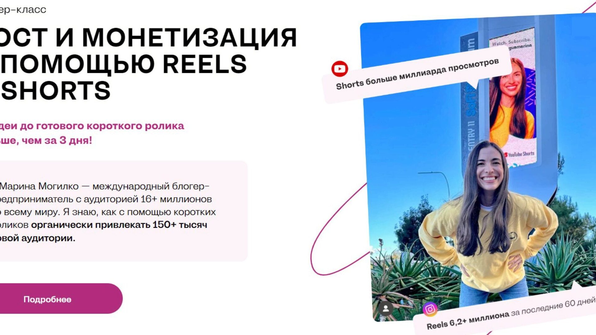 Марина Могилко «Рост и монетизация с помощью reels и shorts. Тариф Самостоятельный»