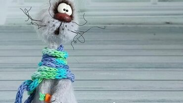 Каркасная игрушка в комбинированной технике из ангоры и мохера. Игрушка вяжется в 2 нити: ангора( Real 40/Angora Gold)+ Kid Royal- в тон основной нити. Для каркаса используется герберная(флористическая) проволока, диаметр 1,2-1,4 мм. Игрушка цельновязаная. Есть лепные детали из полимерной глины.