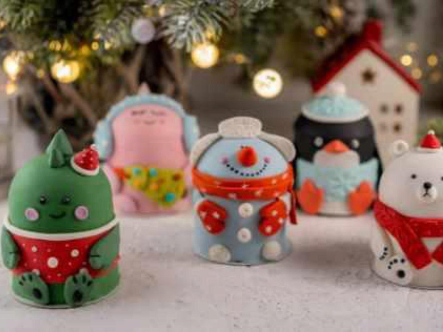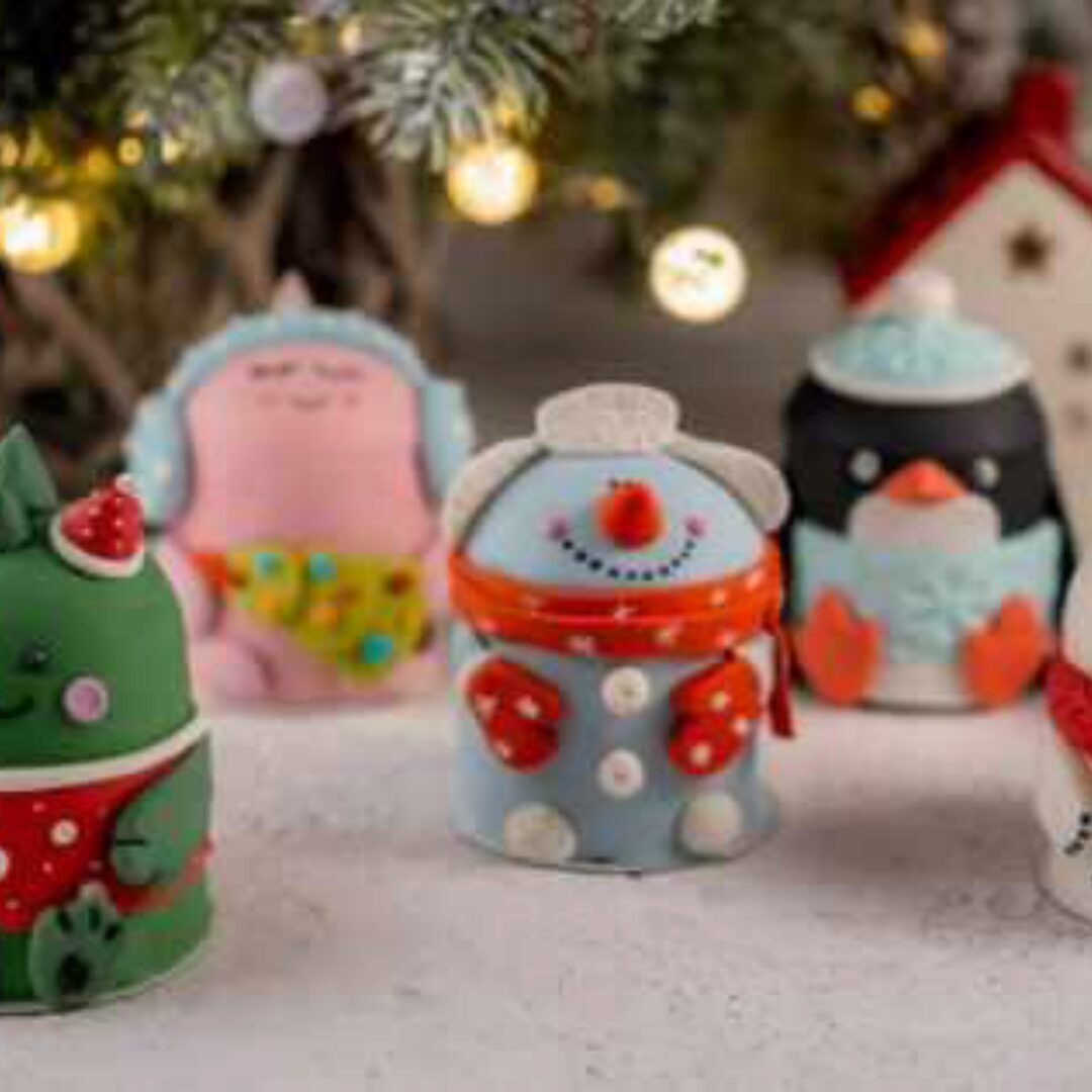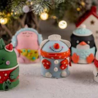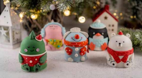 - Тортики-фигурки из зефира: белый мишка, динозавр девочка, снеговик и пингвин