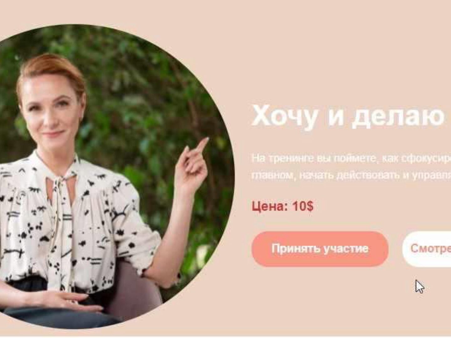 Что вы получите: - Пакет «Хочу больше» - 27 видеоуроков - 12 вебинаров в записи - закрытый чат в Телеграм Для кого программа Вам не хватает уверенности в себе Нет видения, что делать с тем, что «в наших руках» Вам не нравится ваша жизнь, а порой и вы сами Тем, кто не верить, что может больше, кто