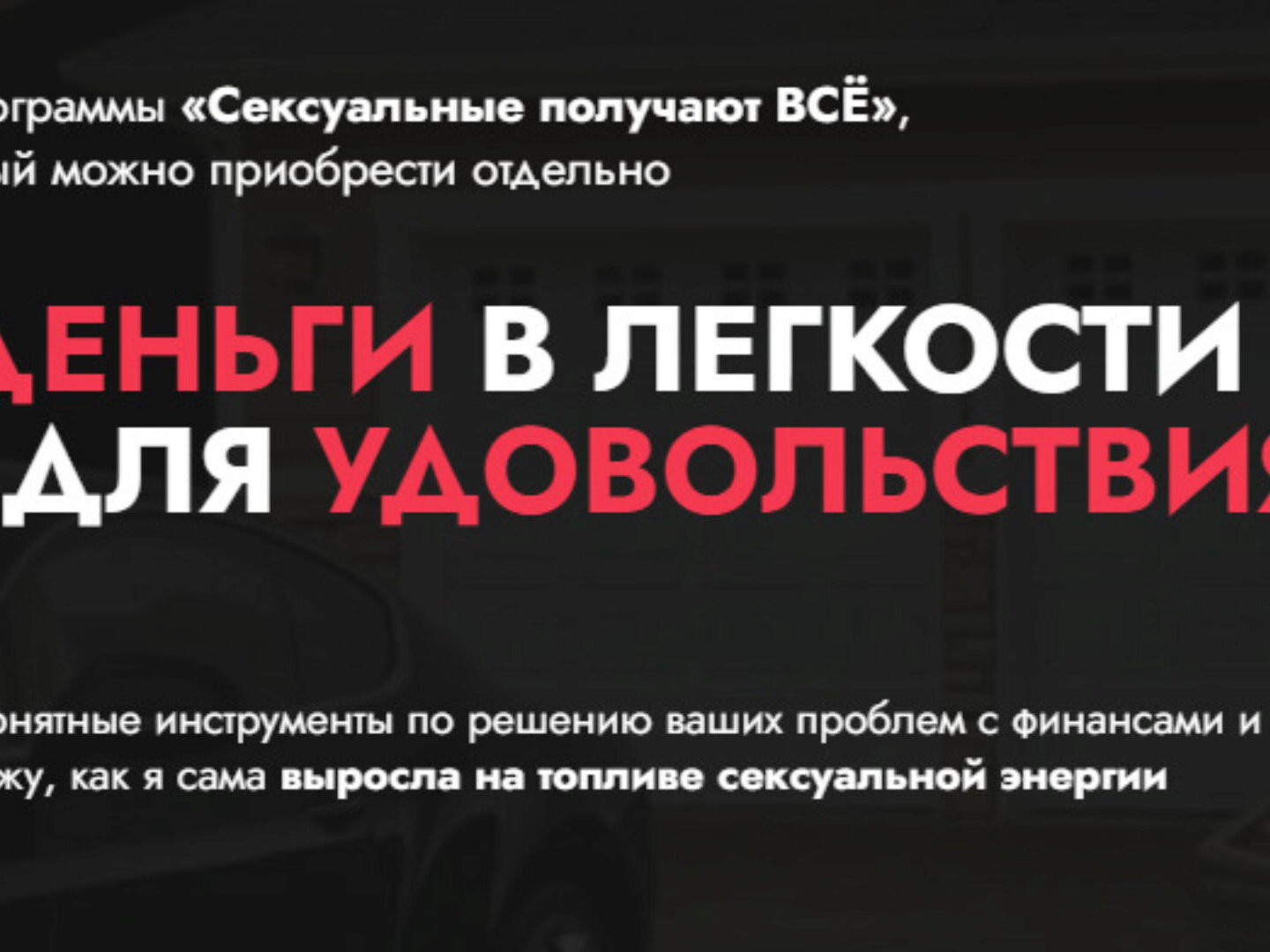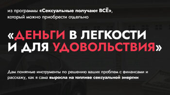 Интенсив для вас, если вы: 1 Хотите притягивать деньги в свою жизнь без особых усилий 2 Хотите вдохновлять своего мужчину на повышение дохода для комфортной жизни семьи 3 Желаете научиться эффективно распоряжаться своими деньгами и приумножать уже имеющийся доход 4 Понимаете, что можете работать