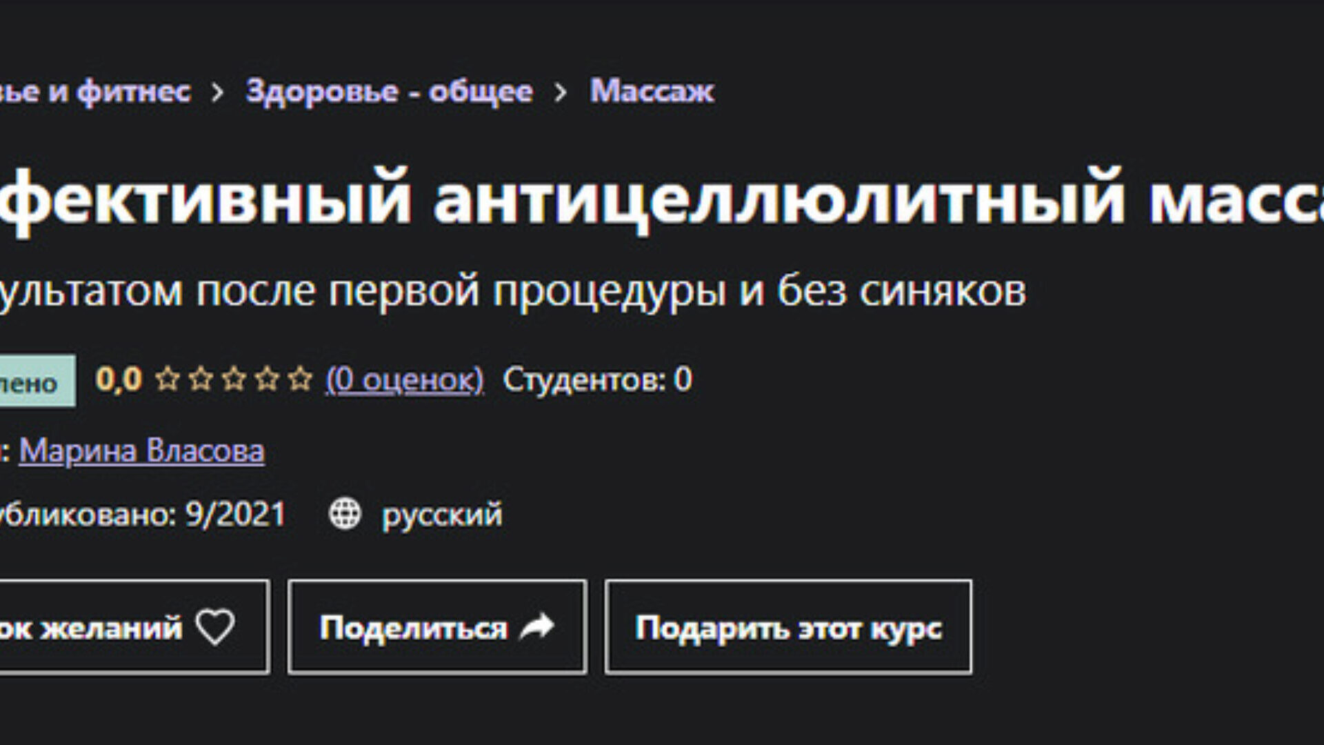 Марина Власова «Эффективный антицеллюлитный массаж» — Udemy