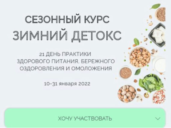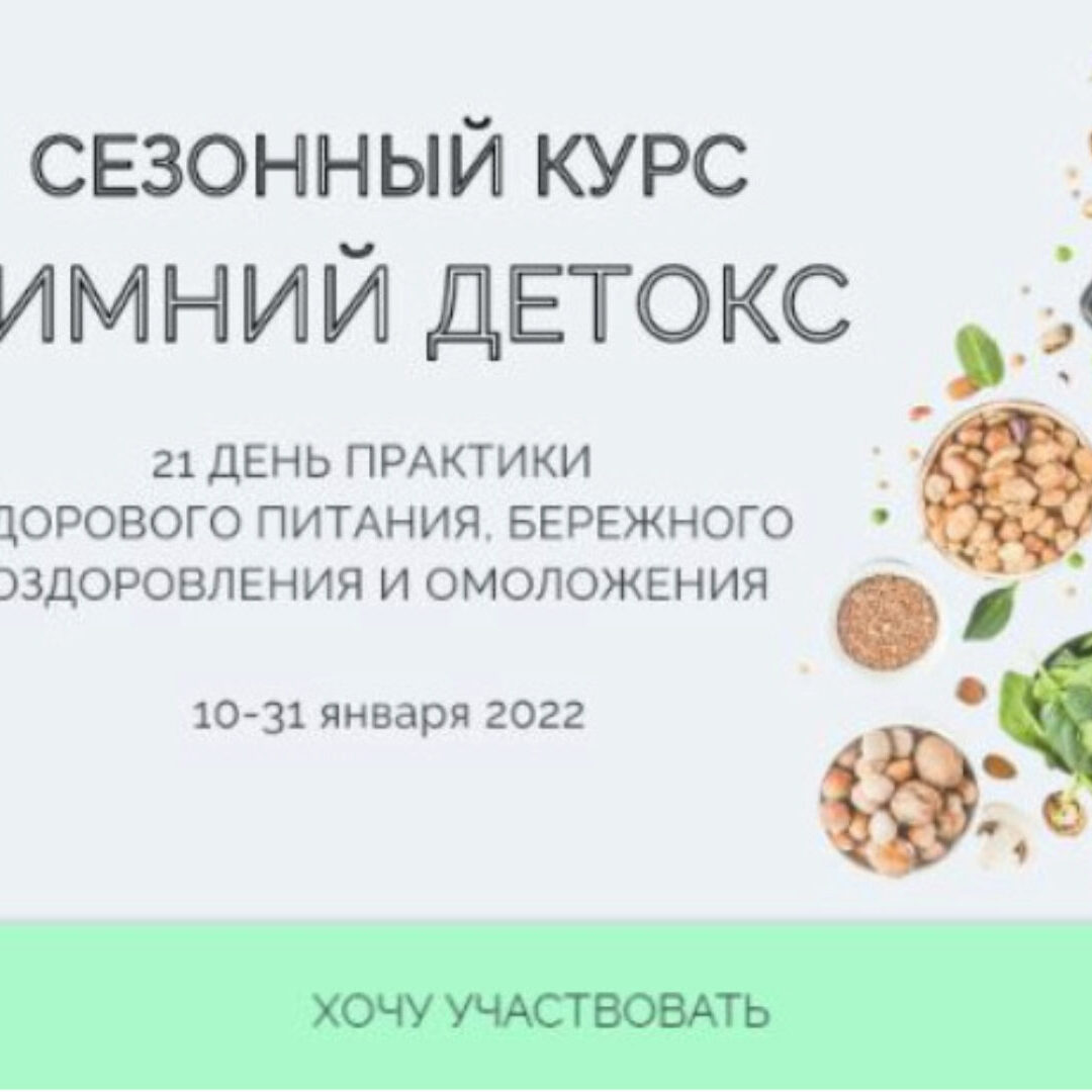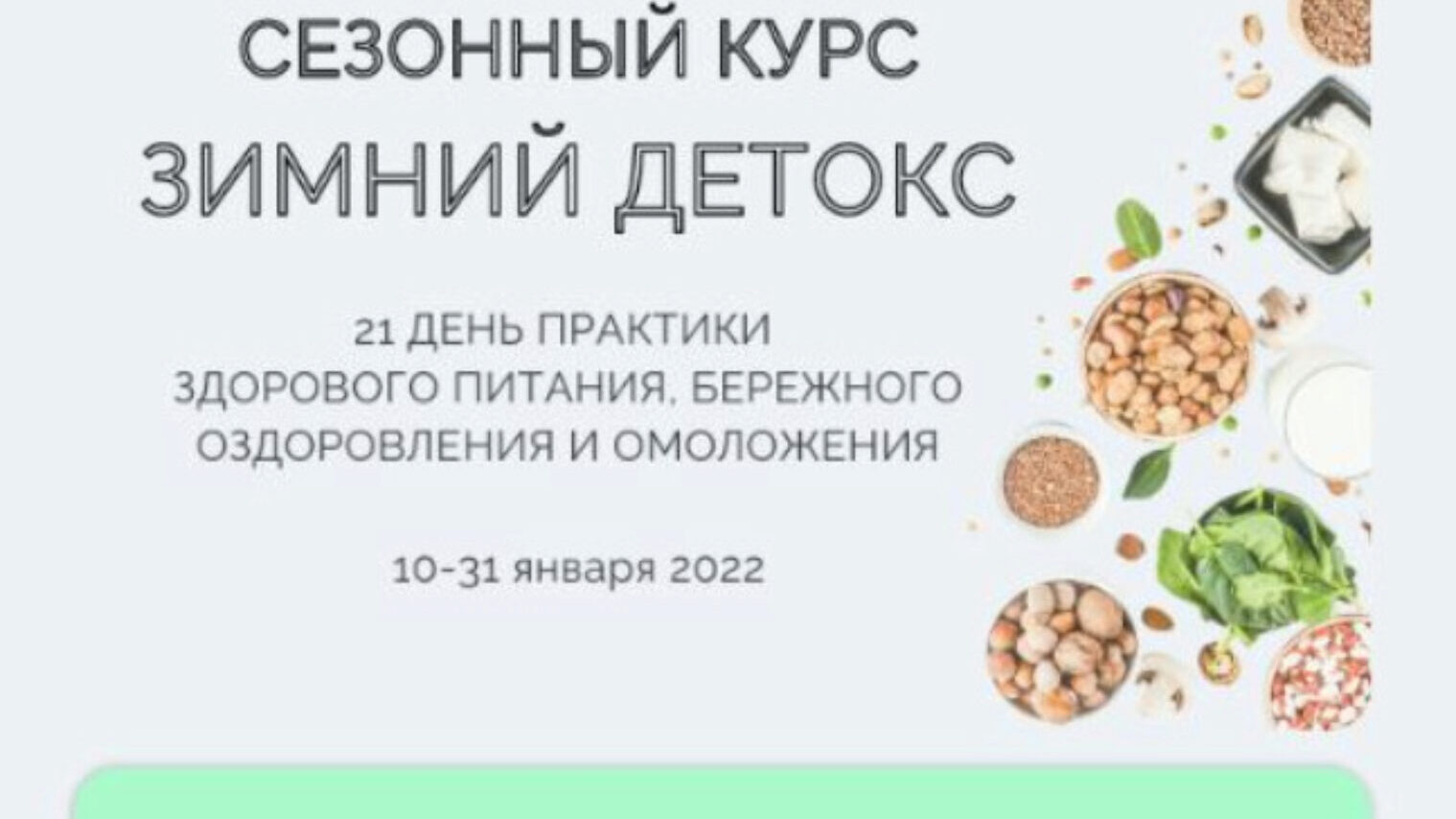 Сезонный курс зимний детокс 21 день практики здорового питания, бережного оздоровления и омоложения. Вкуснейшее авторское меню на 21 день. Согласно схемы вытеснения тяжелых металлов, информационной и токсической нагрузки. Будут новые, совершенные рецепты. Как обычно готовим быстро, вкусно и
