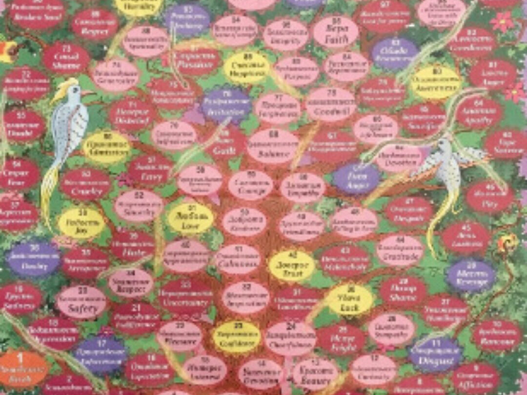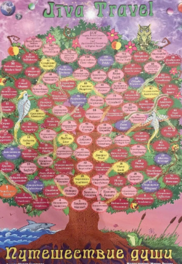 Игровое поле «Путешествия Души» – это Древо Души, представляющее собой мир самых разнообразных чувств, эмоций и состояний. Игра «Путешествие души» – это разговор с нашим подсознанием. Бросок кубика приводит игрока именно на те клетки, которые игроку необходимо осознать и проработать, чтобы вывести себя в новое ресурсное состояние. Игра подходит для работы с эмоциональным интеллектом.