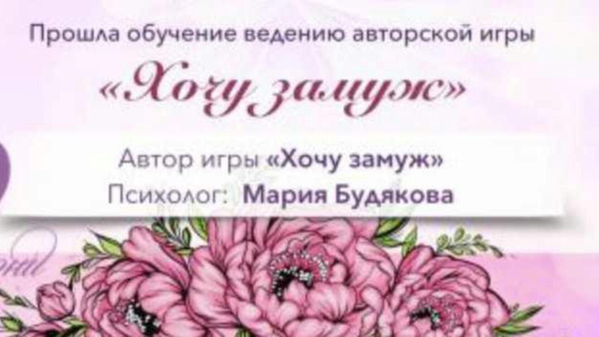 Мария Будякова Видео обучение и сертификация игре «Хочу замуж»