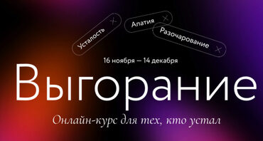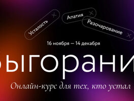 Выгорание — болезнь ХХI века. Ее часто путают с безобидной усталостью, но это не одно и то же. Если расслабляющие ванны и спа-процедуры помогают на короткое время, если пятничный коктейль — уже привычка, если вы никак не можете «наотдыхаться», этот курс для вас. Выгорание может привести к депрессии, поэтому важно вовремя заметить свое состояние.