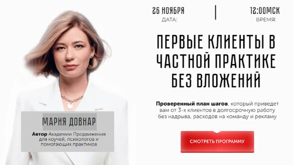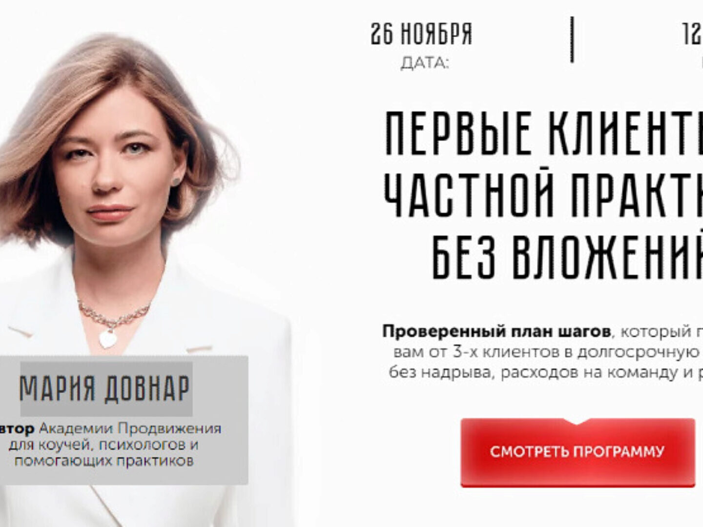 Мария Довнар «Первые клиенты в частной практике без вложений»