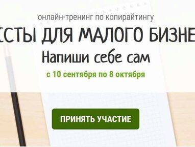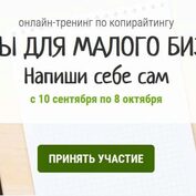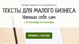 Сразу после тренинга у вас будет несколько готовых текстов, которые тут же можно будет использовать в вашем проекте.