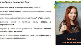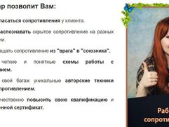 «Работа с сопротивлением в консультировании и психотерапии: метафорические ассоциативные карты + когнитивная терапия» Н. Буравцова Обучающий видеокурс «Работа с сопротивлением в консультировании и психотерапии: метафорические ассоциативные карты + когнитивная терапия» Видеоуроки содержат: анализ