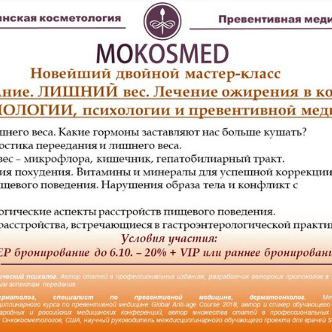 Моргунова М.А. – врач-дерматолог, специалист по превентивной медицине, дерматоонколог. Медицинский советник; научный руководитель Международного междисциплинарного курса по превентивной медицине Global Anti-age Course 2018; автор и спикер обучающего цикла по превентивной медицине Duo Medici; регулярный докладчик международных и российских медицинских конференций, автор множества статей в профессиональных медицинских изданиях, член совета директоров Международной Ассоциации Онкокосметологов , США, научный руководитель междисциплинарного обучающего проекта для врачей SUPERINTENSIVE , руководитель школы MOKOSMED , САНКТ-ПЕТЕРБУРГ.