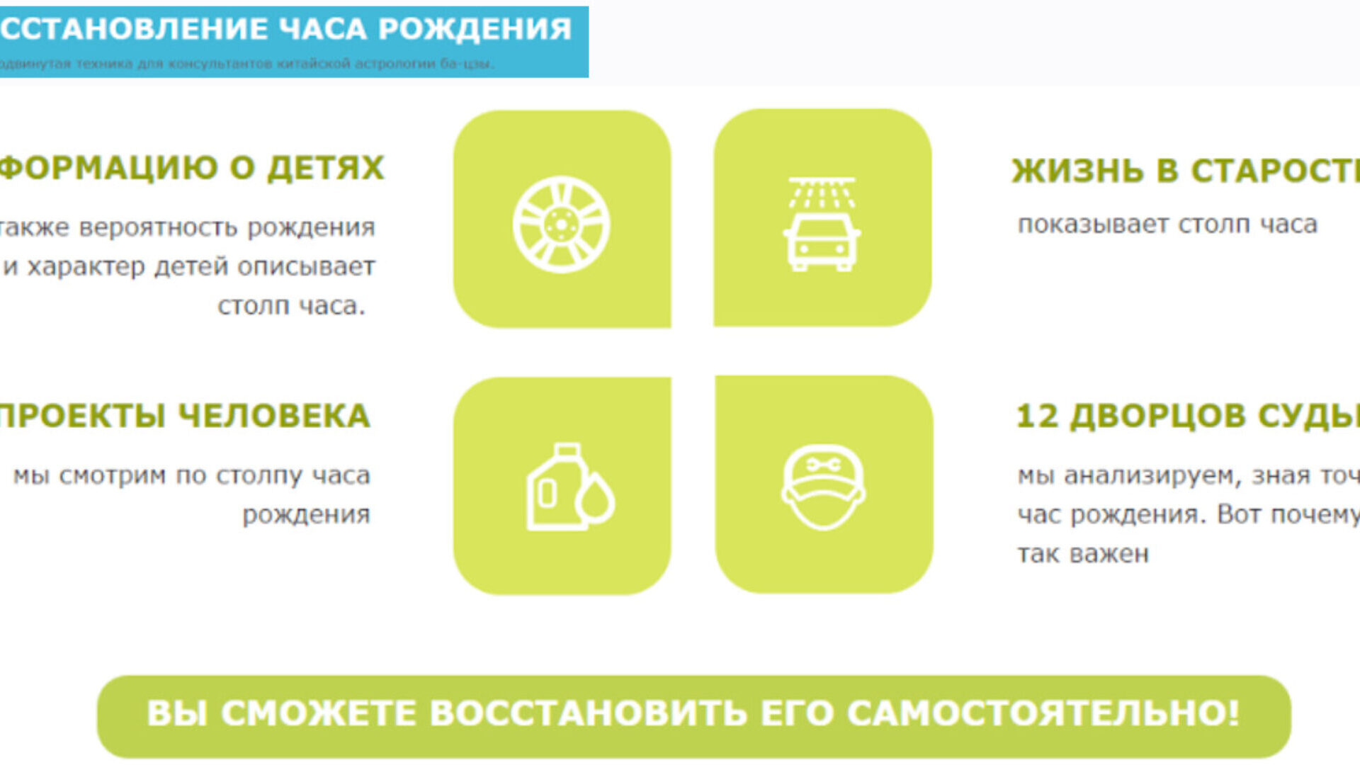 Восстановление часа рождения в Бацзы [Надежда Романова] Надежда Романова «Ректификация гороскопа Ба Цзы (4 столпа судьбы)» Точное время рождения – это важнейший параметр при составлении гороскопа. Без точного времени любой прогноз превращается в угадайку. К сожалению, очень часто бывает такая