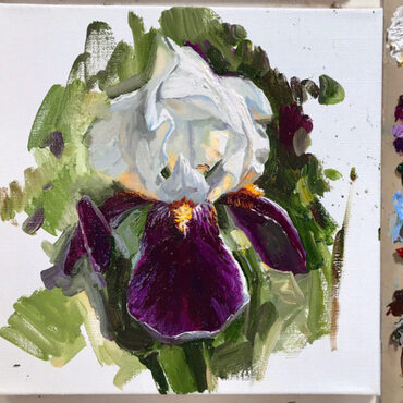 Краски: белила титановые, неаполитанская желто-палевая, ультрамарин, травяная зеленая, хинакридоны красный и фиолетовый, краплак, желто-зеленая, неаполитанская желтая