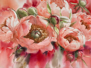 На этой осенней онлайн-практике с Марией Павловой мы продлим себе немного лето и напишем картину с роскошными коралловыми пионами.