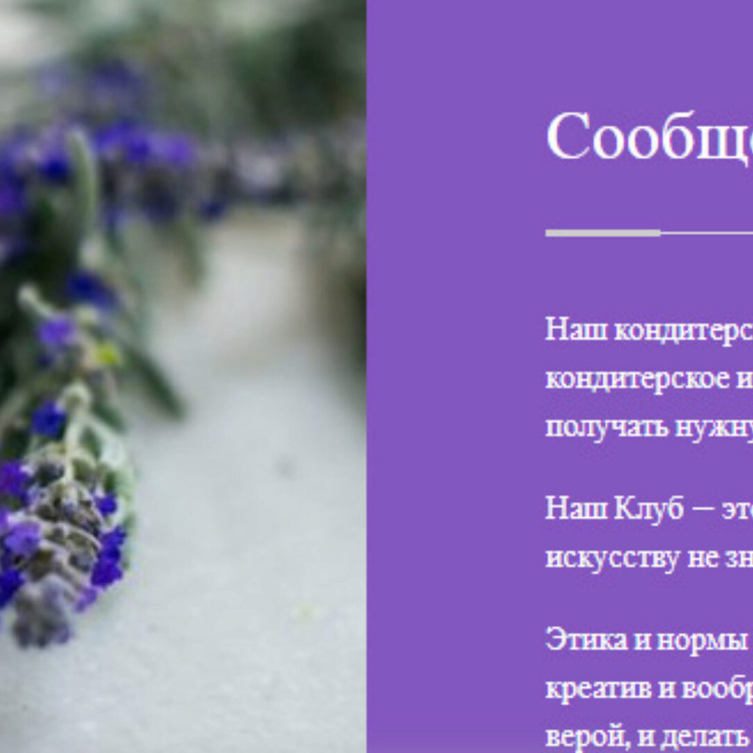 Наш кондитерский Клуб приглашает вас в сообщество, где все влюбленные в кондитерское искусство, как профессионалы, так и новички или любители, могут получать нужную информацию, обсуждать и делиться ею.