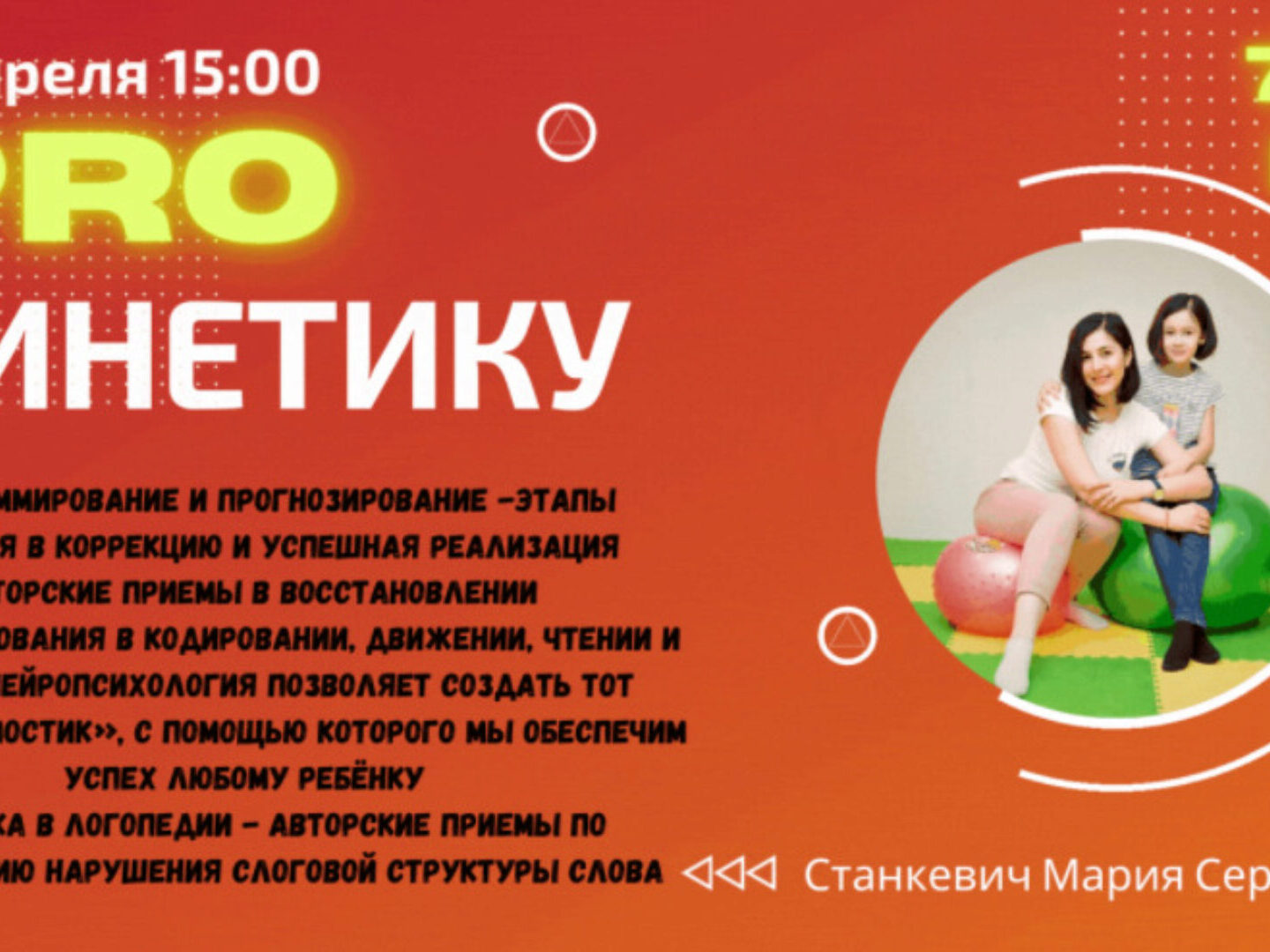 17 МАРТА 2021 18:00 МСК Мастер-класс «ProКогнитивку» Кто ведет: СТАНКЕВИЧ Мария Сергеевна - руководитель Центра нейропсихологии и дефектологии «Дирижабль», медик, клинический логопед, клинический психолог и нейропсихолог. Сколько стоит: 800 руб. Что будет: На мастер-классе будут представлены