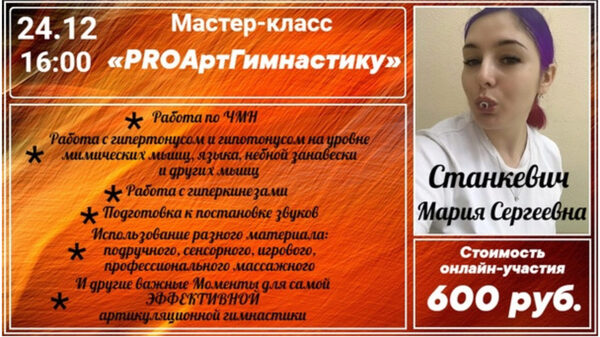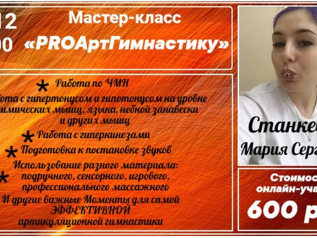 Что входит в программу стажировки: Ежедневно 2 занятия с детьми, имеющих нарушение «дизартрия» Он-лайн встреча со Станкевич Марией Сергеевной и подробное обсуждение хода занятия и всех приемов Предоставление для ознакомления структуры занятий на детей Рассмотрение вопросов на заданную тему по