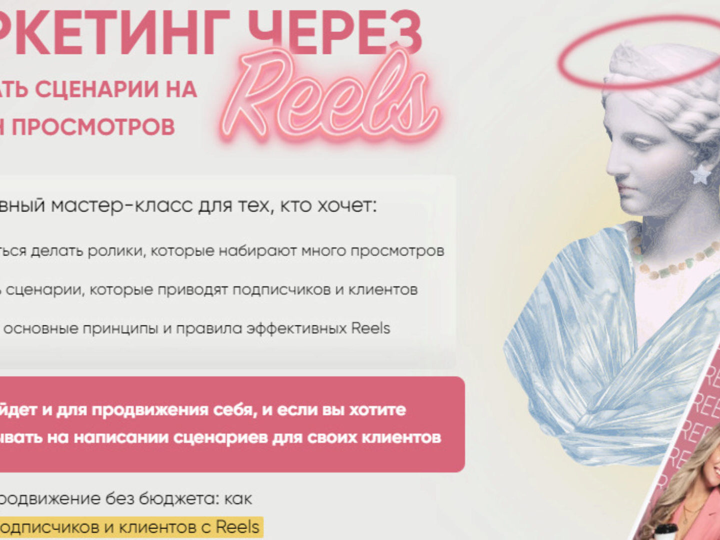 КИНО-REELS – ЭТО ТЕХНОЛОГИЯ ЗАХВАТА ВНИМАНИЯ БУДУЩЕГО КИНО — ЭТО ПРИЯТНОЕ ГЛАЗУ ИСКУССТВО, НА КОТОРОМ ЗАРАБАТЫВАЮТ МИЛЛИАРДЫ REELS — КОРОТКИЕ КРЕАТИВНЫЕ РОЛИКИ = КИНО-REELS -ИСПОЛЬЗУЯ МЕТОДИКИ СОЗДАНИЯ ФИЛЬМОВ ВЫ СОЗДАДИТЕ ВИДЕО, КОТОРЫЕ ПОЗВОЛЯТ ВАМ ВЫДЕЛЯТЬСЯ, ЦЕПЛЯТЬ НОВУЮ АУДИТОРИЮ, ПРОДАВАТЬ