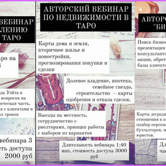 (Курс сосредоточен на отработке навыков работы таро-консультанта в вопросах бизнес-сделок, недвижимости и судопроизводства )