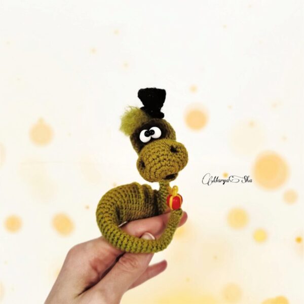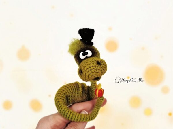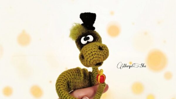 Мастер-класс представлен на 12 страницах, с подробным пошаговым описанием вязания, с множеством фотографий на каждом этапе вязания. При использовании указанных материалов получается игрушки высотой 15 см, в длину - 50см. Уровень сложности - средний.