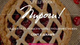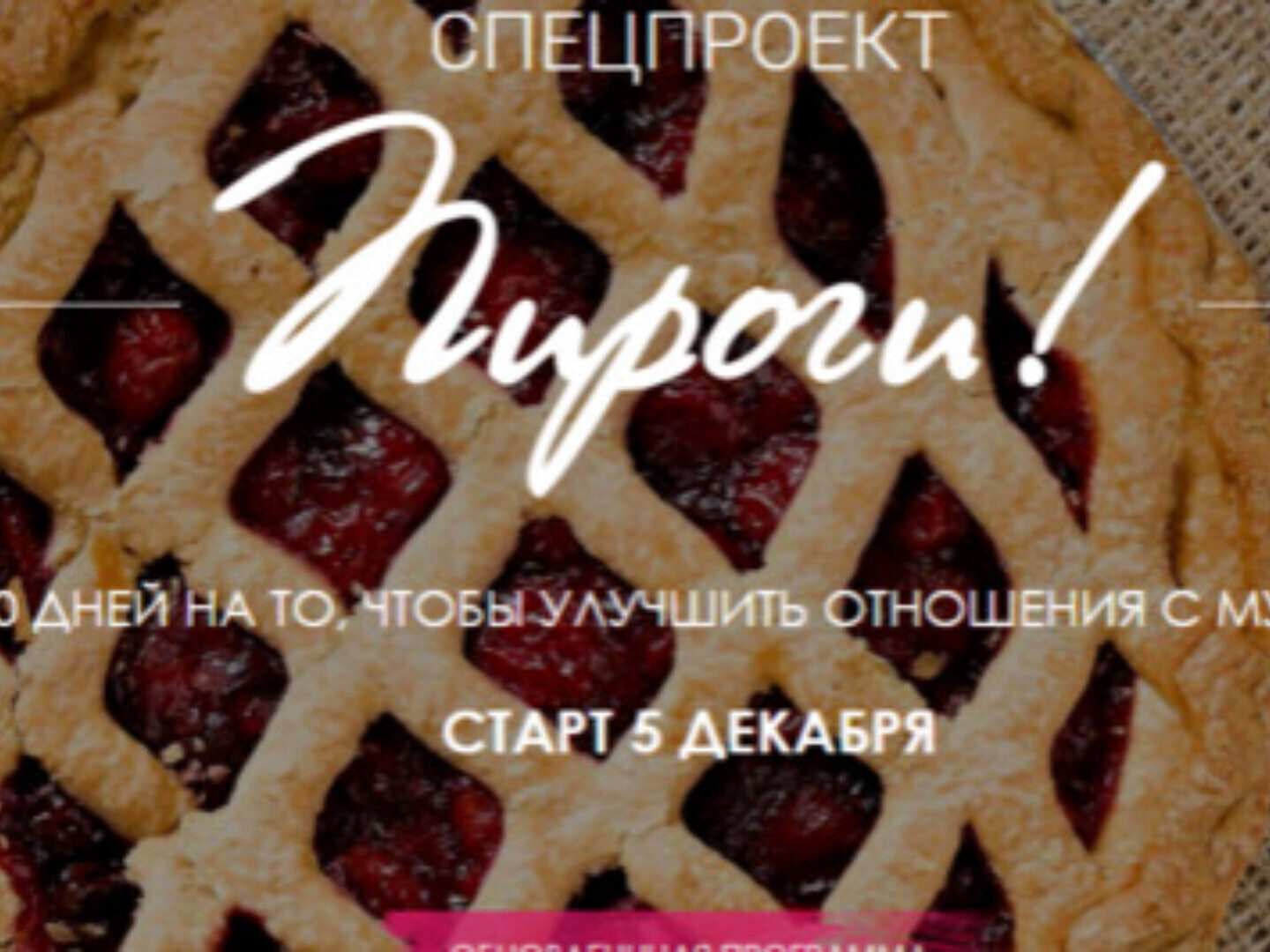 Реалити-шоу «Пироги», автор - Мария Висс. Старт 28 мая 2018 года. 20 дней на то, чтобы получить идеальные отношения с мужем. Более 15000 счастливых жен не могут ошибаться: Пироги работают! В чем соль? «Пироги» - так я называю свою технику поведения с мужем, которая заключается в пошаговых действиях