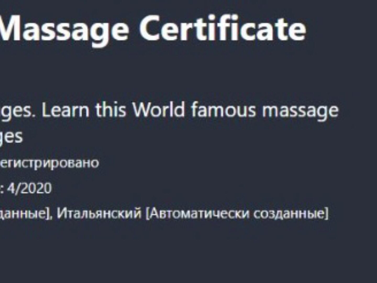 Курс на английском языке без субтитров Узнайте, как выполнять массаж глубоких тканей и другие передовые техники массажа из этого бестселлера курса массажа. Язык английский. Для кого этот курс: Этот курс глубокого массажа тканей предназначен для студентов, которые хотят поднять свой массаж на новый