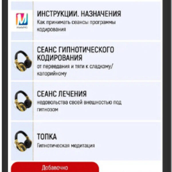 Мощный психотерапевтический сеанс, доказавший свою эффективность. Данная аудио визуальная программа активирует в организме еще один, дополнительный механизм контроля за насыщением, который наряду с формированием отчетливого чувства сытости, будет блокировать саму возможность дальнейшего приема