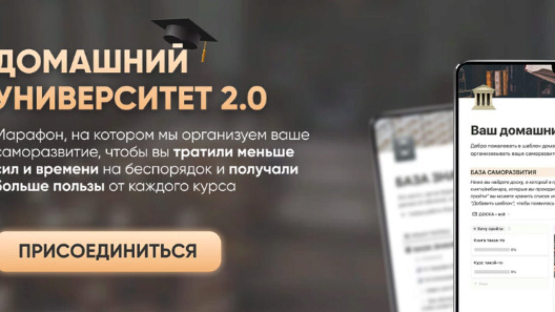 Также мы внедрим инструменты, которые помогут вам брать из каждого курса максимум, чтобы вы могли тратить на учебу меньше времени, но при этом получать больше пользы.На интенсиве мы выстроим ваш собственный домашний университет. Эта система поможет вам хранить и организовывать все материалы по обучению (конспекты, мысли, идеи и т.д.), чтобы вы меньше сил и времени тратили на хаос, и грамотно планировать обучение так, чтобы оно комфортно вписывалось в ваш график.