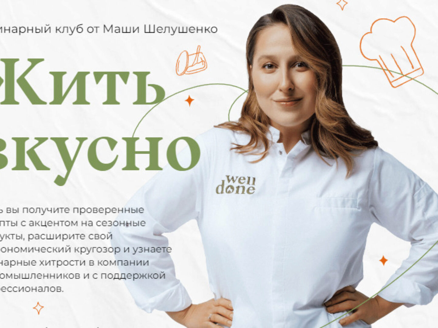 Жить вкусно. Кулинарный клуб от Маши Шелушенко. Январь - Июнь 2023. Тариф Полугодовой (Маша Шелушенко) Мы все часто покупаем одни и те же продукты, готовим одинаковые блюда, ходим в проверенные места и берём там знакомые позиции меню. Так проще, но в итоге мы оказываемся в замкнутом круге, в