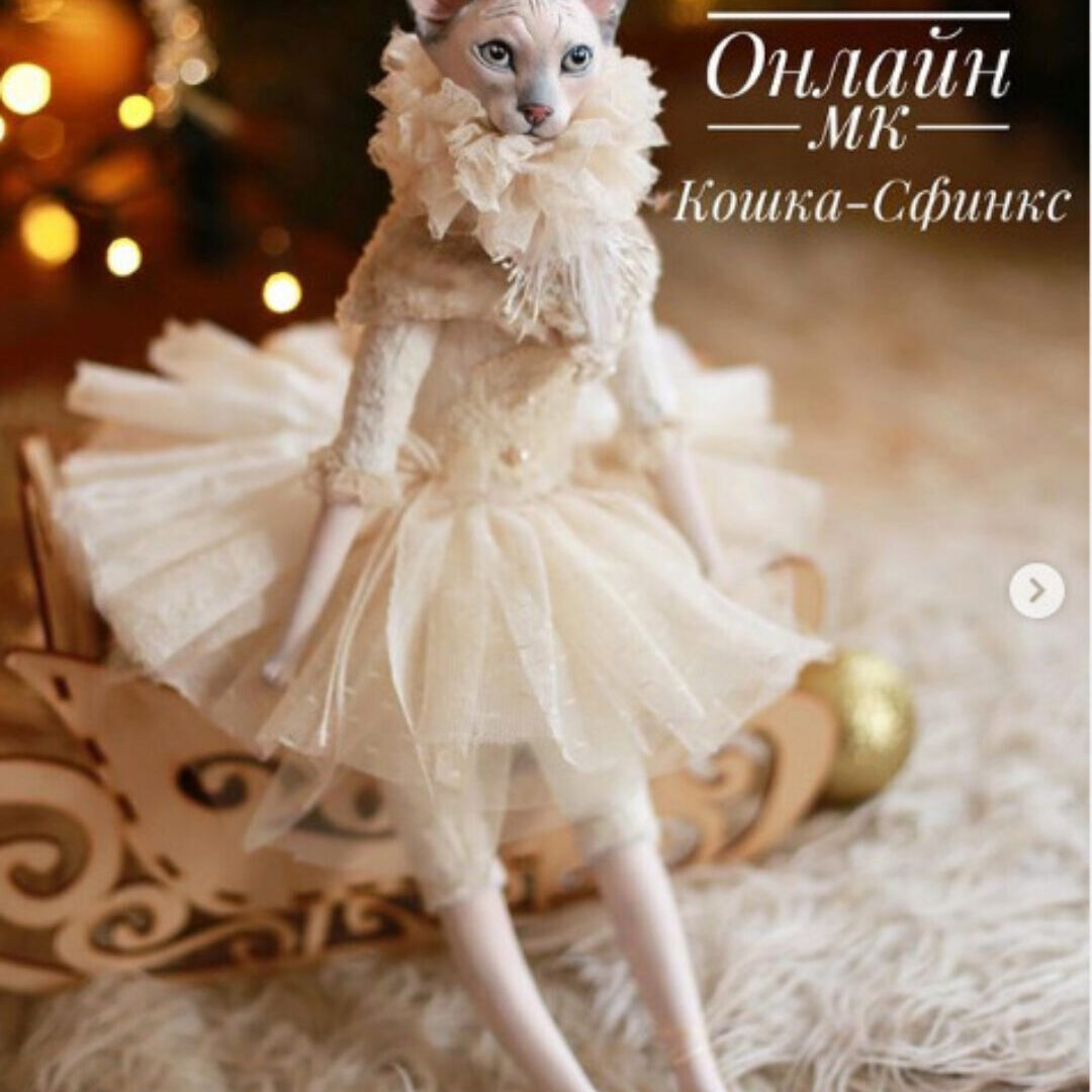 - запись онлайн мастер-класса «Кошка-сфинкс» на примере куклы «Ванильная кошка». Это 35 видео, записаны в формате igtv, с подробным описанием процесса изготовления куклы, начиная от выкройки заканчивая костюмом. Каждое видео с подробным разбором всех этапов изготовления Куклы