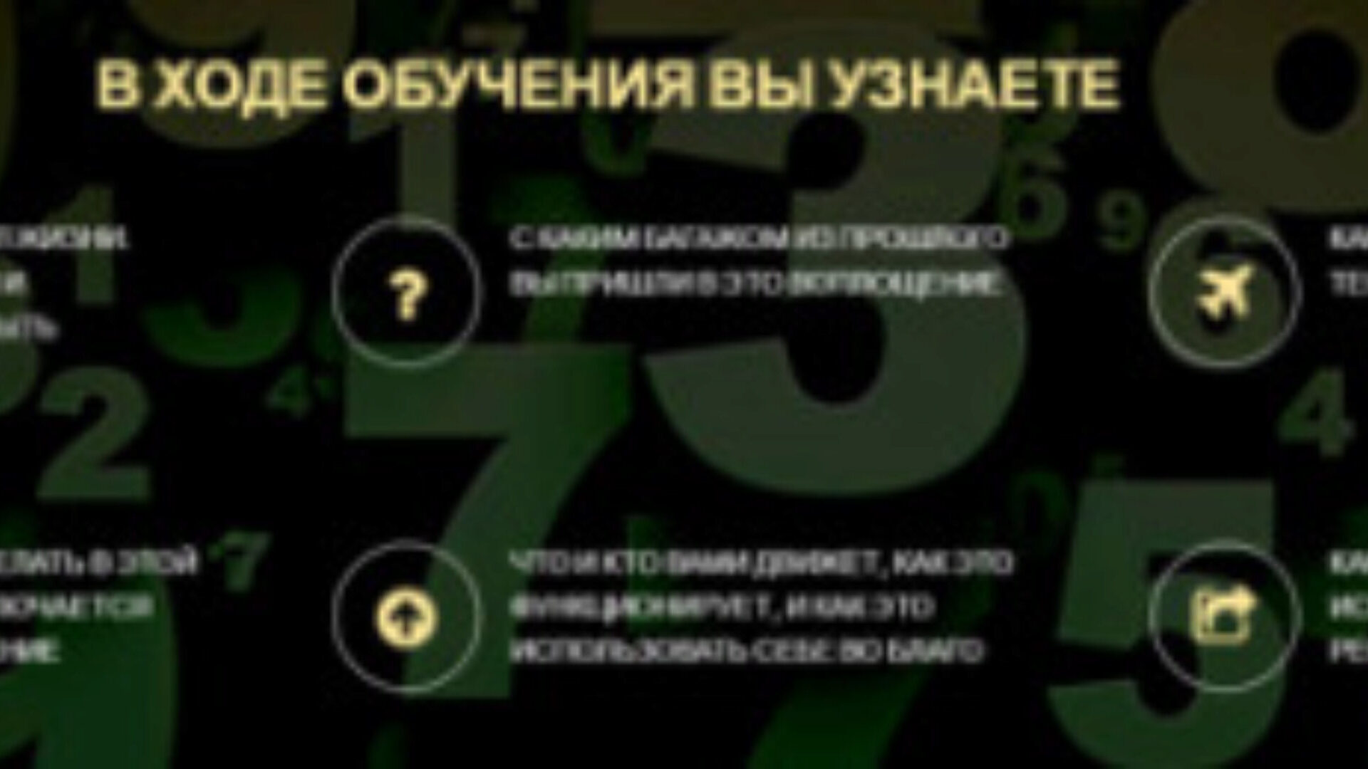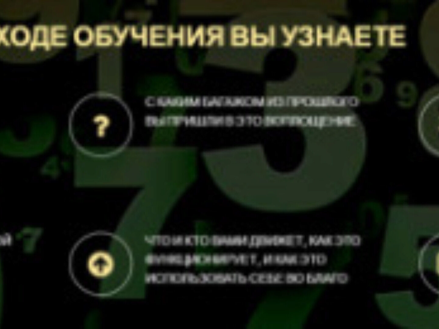 Программа интенсива:День 1 Спойлер: Программа дня 1. Основы финансовой астрологии 2. Психология денег 3. Ваша финансовая ёмкость 4. Как проработать блоки, негативные установки на деньги? 5. Профориентация 6. Какие сферы и ниши принесут прибыль? 7. Как найти своё дело в жизни? 8. Главные бизнес