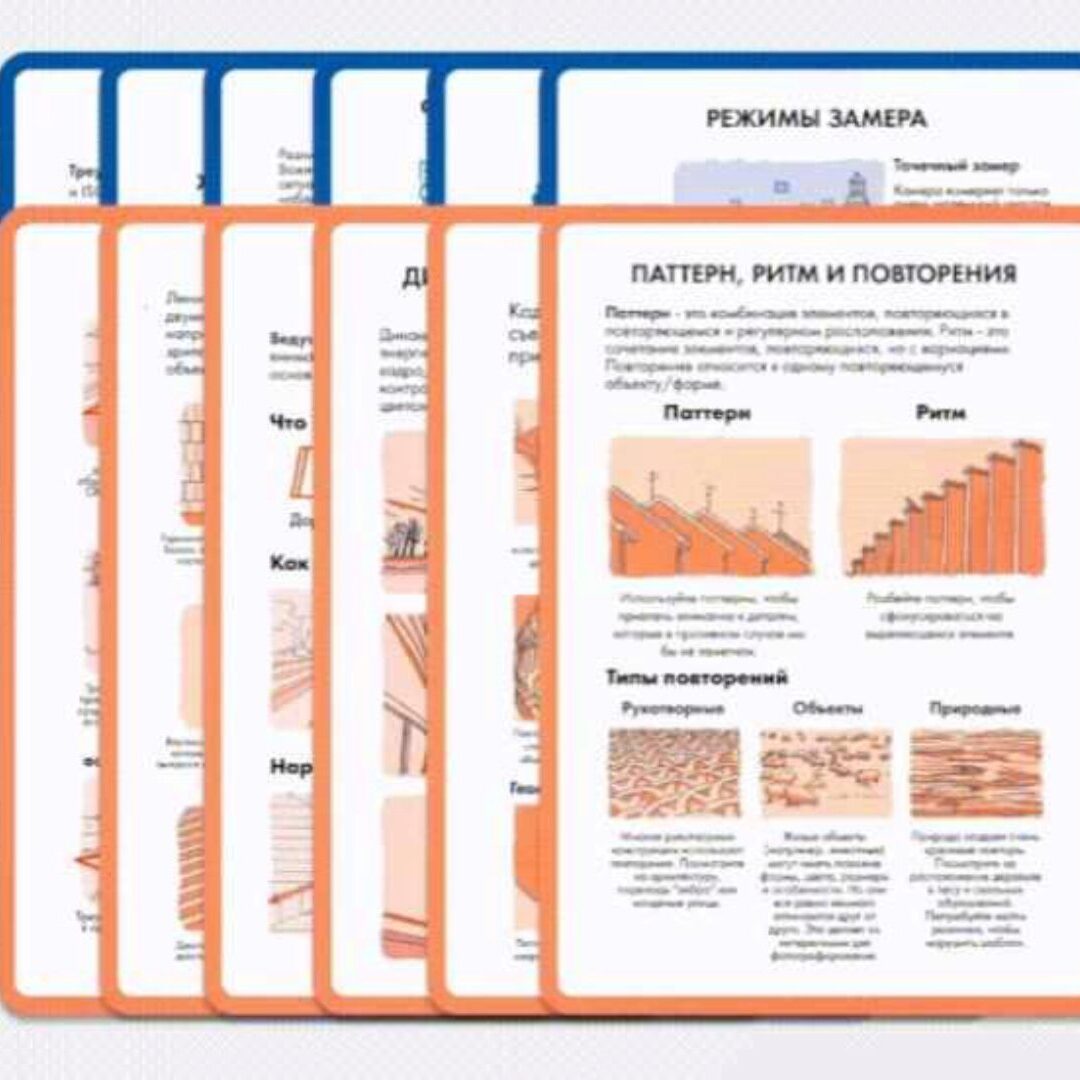 Карточки для быстрого запоминания информации - это современный способ обучения. Вам идеально подойдут наши «шпаргалки» по фотографии, если вы новичок в создании фото или профессионал, желающий раз и навсегда закрыть все пробелы в своих знаниях. Материалы разбиты по цветам на 4 основные категории, где каждая карточка охватывает отдельную тему.