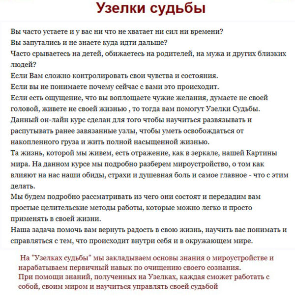 Отзывы о курсе [Женский круг Веджена] Узелки судьбы (Майя)