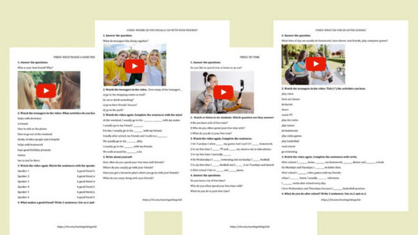 Разработанные рабочие листы включают 3 этапа работы с видео (before, while и after), а также ответы и видео скрипты, что облегчит подготовку к уроку.