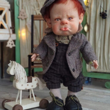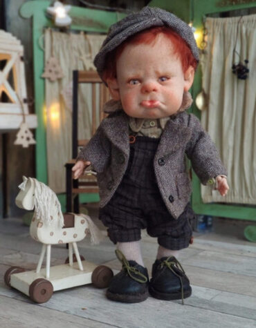 Я довольна результатом, а, это редко бывает! Мне понравилось, конструкция, конфигурации, этой девочки, большая голова, худенькое тельце, большие ножки все, это можно подчеркнуть костюмом. И вуаля, перед нами, мультяшный герой! А какой??? Вы сможете решить сами, а почему, да потому, что на курсе