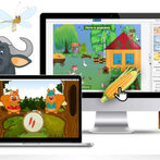 Первый уровень — знакомство с карточками и картинками — подходит для детей, не умеющих читать. Рассказываем историю про три картинки и ищем подходящую карточку. «Жил-был слон, он пил сок и ел сыр». Можно искать знакомые буквы на рубашках карточек, а можно пока не обращать внимание на буквы.
