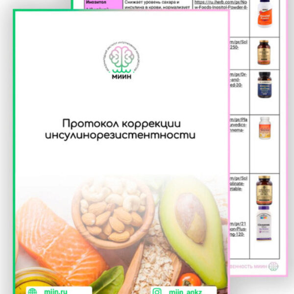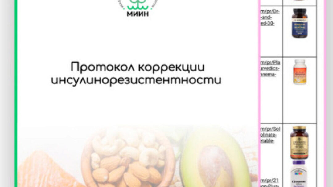 Чем опасна инсулинорезистентность? Причины и симптомы - Диагностика. Шаги коррекции. Образ жизни - Список разрешенных и запрещенных продуктов для коррекции инсулинорезистентности - Схема приема препаратов и готовый план питания на 4 недели Подробный разбор тем: Чем опасна инсулинорезистеность