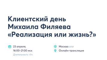 Первая часть. Михаил в студии Псидваноль в Москве прорабатывает запросы демонстрантов, прошедших предварительный отбор, а все желающие подключаются к YouTube-трансляции в качестве наблюдателей, получают полезные знания и перенимают опыт для здоровой жизни. Клиентский день — это единственная возможность попасть на разбор к Михаилу Филяеву.