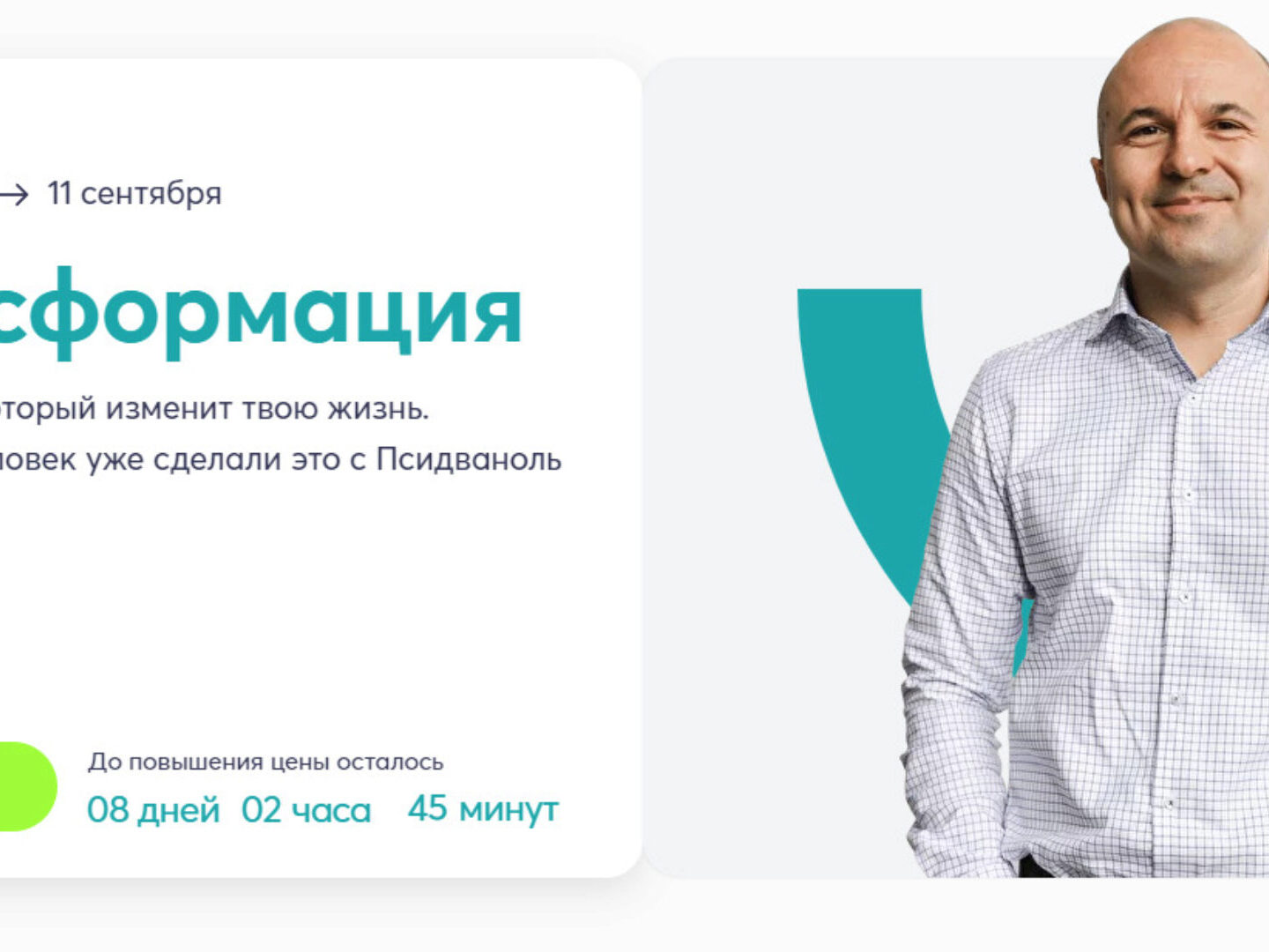 07.08.2023 - 11.09.2023 Трансформация — про тебя, если сейчас ты: живешь не так, как искренне хочешь жить получаешь за свой труд мало денег постоянно переживаешь о будущем не знаком со своей сексуальностью и не достигаешь оргазмов беспокоишься из-за отношении с детьми, родителями, партнером. 70%