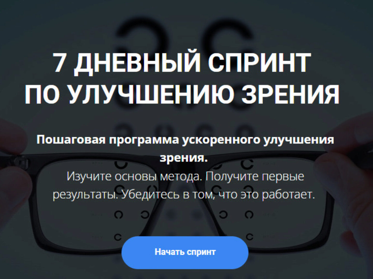 Уже во время спринта, в первый день, вы заметно улучшите своё зрение и поймёте на практике что всё это работает именно для вас. И тогда у вас уже не будет никаких сомнений. Вы будете вдохновлены и мотивированны продолжать улучшение своего зрения дальше, до нормы в 100% и 0 диоптрий.